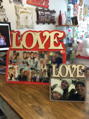 מעמד מעץ מעוצב בשילוב הדפסת תמונות מפלח מתכת מגיע בשלושה גדלים לבחירה