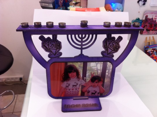 חנוכיה מעץ גודל 20X30 בשילוב תמונה אחת