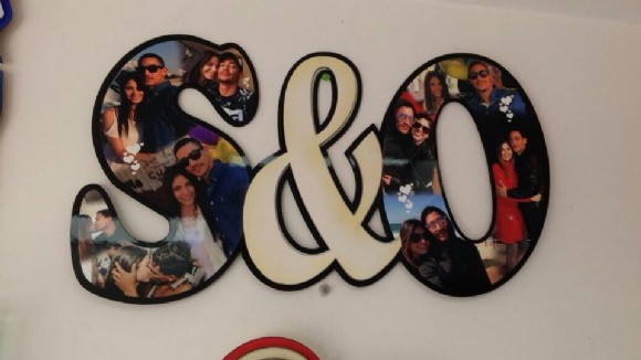 מתנה מעוצבת מעץ בשילוב עת מבריק בצורת האותיות הרשונות של השם שלכם ובן או בת הזוג עם קולאג תמונות ניתן לבחור שני צבעים והקדשה אישית ניתן להזמין בשלושה גדלים לבחירה