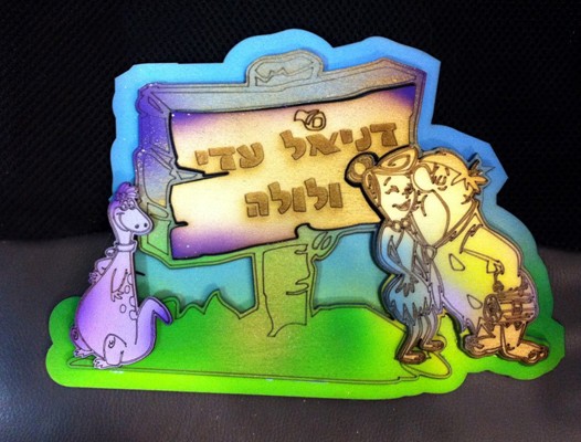 שלט לדלת עם דמיות לפי בקשת הלקוח צבעוני