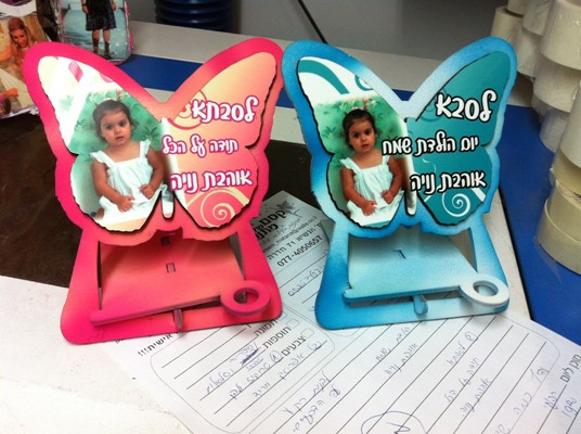 מעמד ממו שולחני עיצוב פרפר הכולל תמונה והקדשה אישית