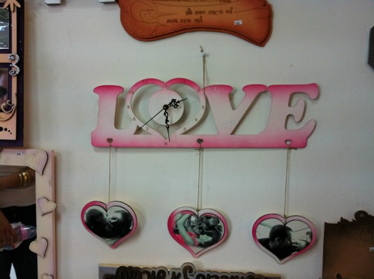 שעון מעוצב גודל 60/20 עם חוטים הקושרים 3 לבבות מעץ מבריק עם תמונות ניתן לכתוב כל שם באנגלית