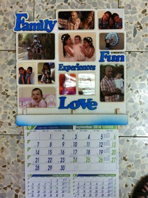 לוח שנה מעוצב גדול מעץ +פלחים מתחכת עם תמונות כלול עד 10 תמונות